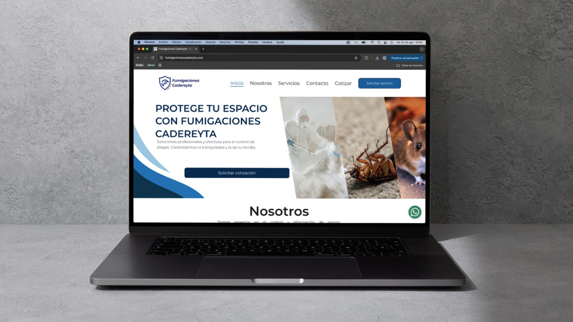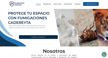 Fumigaciones Cadereyta cuenta con página web y redes sociales activas que atraen futuros clientes, en un mercado en crecimiento que busca seguridad y limpieza.